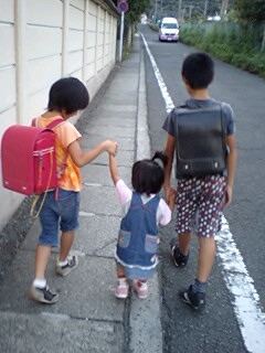 1時にはお昼寝をして、3時少し前に起き、今度は学校に兄姉を迎えに行きます。