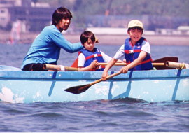 ↑ 市長もカヌー乗りますか? さ、どうぞ!  ↑ 沖から鎌倉を眺めてみました。