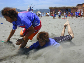 | ↑ 白熱したキッズ・ビーチフラッグ大会 | ↑ お兄さんたちはさらにスゴイ迫力だった・・ |