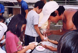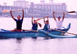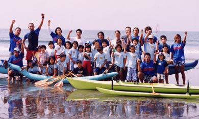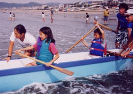 | ■「2回目のカヌーは盛り上がったね、数名病欠の子もいたけど」「最後は、海はおいしいで盛り上がりたいね」…キッズプログラム最終回は、KOCスタッフの子どもたちに対する気持ちからカヌー&シーフードバーベキューをすることになりました。今回は病気になりませんように、晴れて風もありませんように。子どもたちの願いが通じて、最終回も風のないすばらしい晴天! カヌー日和に、材木座海岸には、2艇の4人乗りアウトリガーカヌーと、20名を超える日焼けしたKOCメンバーの笑顔がありました。 ■今回もカヌー体験に加えて、ビーチクリーンプログラムを実施。2班に分かれると袋を渡されたチームは、もう指示を待つこともなく自分たちでゴミを拾い出します。拾わなくちゃいけないゴミを見つけ出し、協力しながら袋へ。ビーチがきれいになっていきます。 ■カヌー体験班は、体操のあと、パドルの使い方をKOCのお兄さんたちにもう一度教えてもらいました。5月の第1回目のカヌー体験を思い出しながら波打ち際で練習します。さあ、いよいよカヌーに乗り込みます。第2回目なので余裕で乗り込み、漕ぎ出します。前後に乗り込むKOCのメンバーとも息ぴったり。スムースに沖の方まで進み、子どもたちの笑顔を乗せて戻ってきます。背のたつところまで来ると、海にジャブンと入る子どもたちも。 ■子どもたちがカヌー体験、ビーチクリーンを進める中、大人たちはバーベキューの準備です。コンロを組み立て、炭を出し、食材を準備したところで子どもたちが合流。「このイカ、かます、サザエ、アサリはこの湘南の海で捕れたものなんだよ」「うわ〜、まだいきてる?」調理される前の生の食材は、子どもたちの興味の的。 ■お兄さん、お姉さんにシラスご飯と鎌倉わかめのお味噌汁を作ってもらい、自分たちが手伝ったバーベキューで焼いて食べる海産物は最高! 当初心配しましたが用意した食材で子どもも大人も満腹になりました。食事の後には年長の子が小さな子をリードして、みんなで仲良く遊びました。片付けも楽しそうにみんなで手伝い、打ち解けた姿も見せてくれました。 海に入れなかった子どもが、自然に海で遊んだり、集団行動が苦手な子が、違和感なく他の学年の子と一緒になったりと、一人一人が抱えていた課題をみんないつの間にか楽しそうに乗り越えていきました。鎌倉の海と、頼もしいKOCの皆さんに囲まれて、子どもたちと大人の笑顔がいっそう輝いたプログラムでした。皆様、ご協力ありがとうございました。 |