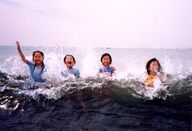 | ↑ ああ、たのしかった! | ↑ 海に飛び込んじゃいました! |