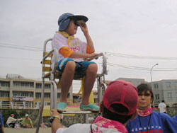 ← 監視台に登ったり、トランシーバーで交信したり。ライフガード気分満点!