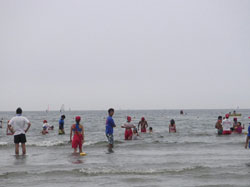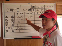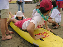 8:45 受付 9:00 全体オリエンテーション 準備体操 9:20 4班に分かれて、活動開始 10:30 休憩、集合写真撮影 10:40 ビーチフラッグ大会 11:10 ライフガードと海あそび 11:40 閉会式、意見交換 12:00 解散 撤収 |