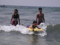 | ↑ 2回目の余裕で笑顔も出たよ! | ↑ にわかボディボーダーだ! |