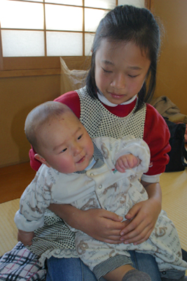 ↑ 6年生に抱っこされる赤ちゃん。初対面でも仲良しよ!