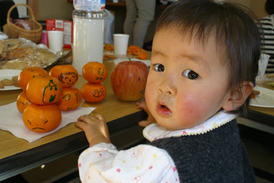 ↑ ママ〜、このミカンお顔があるよぉ