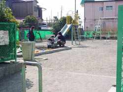 | ■七里ガ浜東いるか公園 (七里ガ浜東4-1) 砂場やブランコがあり広いので、幼稚園児などが集まる。 (2001.05.)