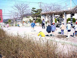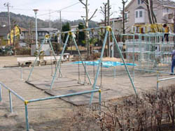 | ■片岡どじょう公園 (手広1500) 片岡幼稚園近く。大きなジャングルジム、砂場あり。 (2001.05.)
