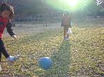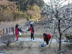 | ↑ 大石の上によじ登って。 | ↑ 休息所近く。池に鴨もいる。 | ↑ 芝生の広場で。 |