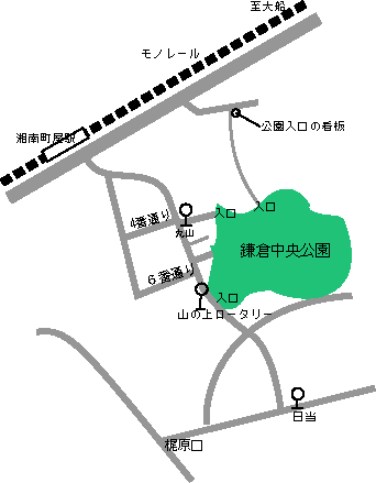 ・湘南モノレール大船駅から湘南町屋駅下車、徒歩10分 ・バス 大船駅から桔梗山または山の上ロータリー行き(ポニー号)、山の上ロータリー下車 徒歩3分 ・バス 鎌倉駅から桔梗山・梶原行き、日当下車 徒歩約11分 |