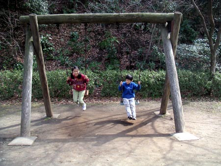 | ■新林(しんばやし)公園は大船よりの藤沢市。大船駅から約4キロ。道が平坦なので、自転車でも行ける。駐車場も小さいながらあるが、休日は満車になることが多いので要注意。 ■公園内は総面積62ha(森林75%)。広々として気持ちがいい。芝生広場でお弁当を食べる人、昼寝をする人。湿生植物区の小川では子どもたちがおたまじゃくしを取ったり、葉っぱで船を作って流したり。 ■なんといっても人気は冒険広場。緑に囲まれた広場にさまざまな木製アスレチック用具があり、幼児から大人まで楽しめる。その先には散策路。1.5kmのコースには展望台や、休憩広場もある。植物群や、野鳥を保護するため、公園のかなりの山林と川名大池部分は立ち入り禁止。川名大池は木製の大きな壁にあけられた穴からのぞき見る。こんな壁穴から見ると、何のことはない景色も、ちょっとワクワクして楽しい。運がよければ、かわせみが見られる。 ■自販機も売店も定期的なイベントもないが、十分楽しめる。藤棚の下にベンチとテーブルがあり、近くにトイレがある。管理事務所はなし。お問い合わせは藤沢市まで。 |